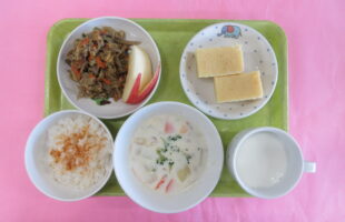 出来島保育園の給食は、「地産地消」を大切にし、