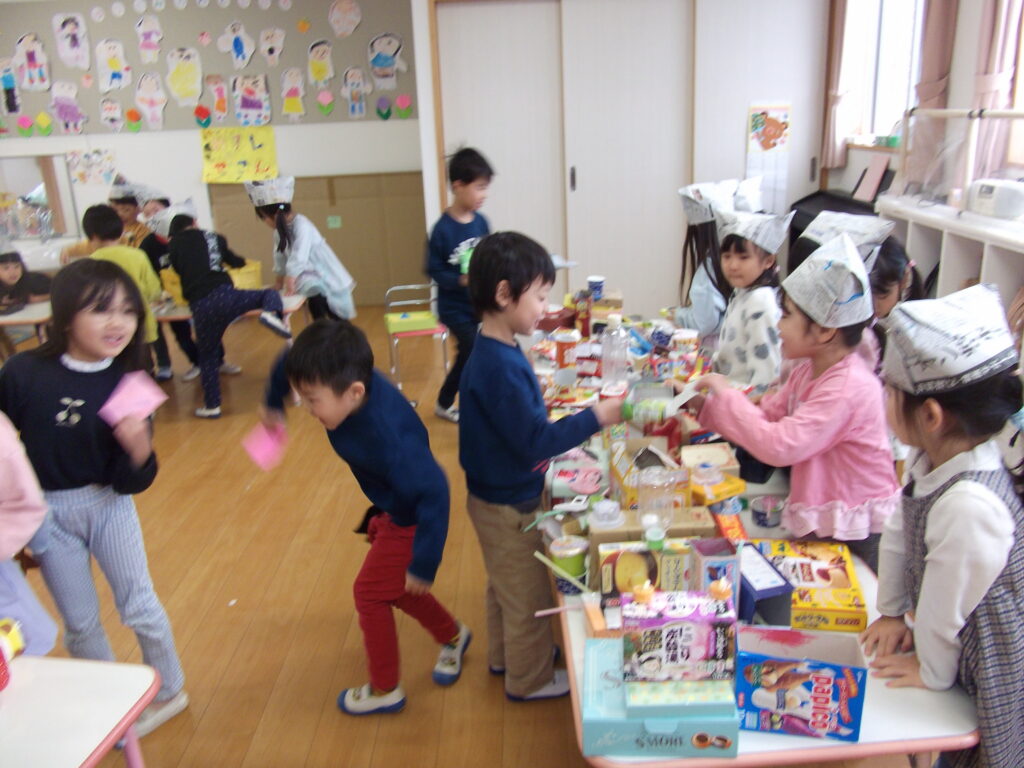 ゆり1とゆり2で一緒におみせやさんごっこをしました🍣🍦