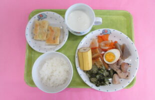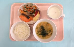 鮭のムニエル 里芋の味噌汁 切り干し大根のゴマ酢和え りんご(午後のおやつ:バナナヨーグルト)
