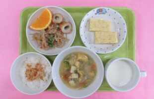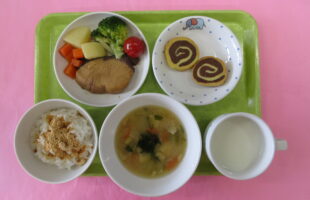 出来島保育園の給食は、「地産地消」を大切にし、